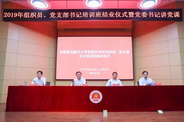 近日,沈阳航空航天大学举行2019年组织员、党支部书记培训班结业式暨党委书记讲党课活动。学校党委书记翟文豹,党委常委、纪委书记王峰,党委常委、副校长杜宏亭出席仪式,学校全体党务干部、辅导员以及机电工程学院机械制造及自动化教工党支部全体党员参加了结业式并听取党课。