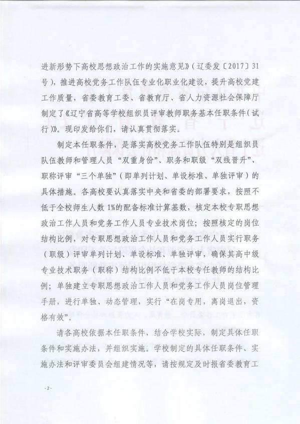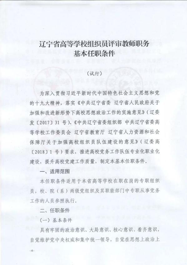 中共辽宁省委教育工作委员会 辽宁省教育厅 辽宁省人力资源和社会保障厅关于印发《辽宁省高等学校组织员评审教师职务 基本任职条件 (试行)》的通知