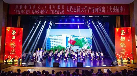 近日,大连交通大学全体领导、副处级以上干部、各党支部书记和全体2019级同学一起在旅顺校区文体中心观看原创音诗画《大铁精神》演出,参加“聆听初心故事 厚植爱国情怀”宣传教育活动。