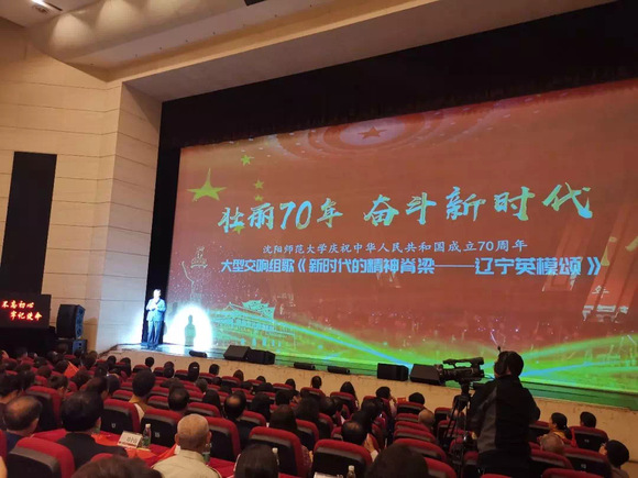 为庆祝中华人民共和国成立70周年,深入推进“不忘初心、牢记使命”主题教育取得实效,沈阳师范大学音乐学院创作排演的大型交响组歌《新时代的精神脊梁——辽宁英模颂》于近日隆重首演。演出通过组歌的艺术形式,生动形象地再现了雷锋、毛丰美、郭明义、罗阳、丁慧等五位英模的成长历程和光辉业绩,以人们对英雄人物的怀念和颂扬为主线,弘扬共产党员的无私奉献精神和新时代辽宁精神。