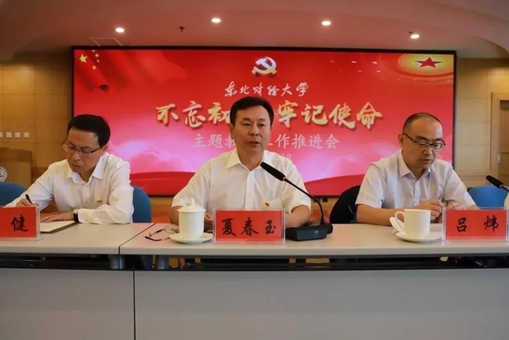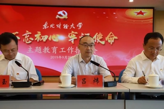 近日,东北财经大学党委召开“不忘初心,牢记使命”主题教育工作推进会。学校党委“不忘初心、牢记使命”主题教育领导小组成员,主题教育领导小组办公室及各专项工作组成员,各二级党组织书记、组织员和主题教育联络员,部分单位主要负责人参加会议。