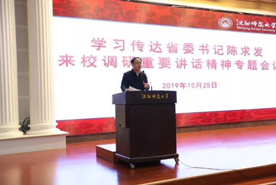 10月25日,沈阳师范大学召开全校中层干部大会,传达省委书记陈求发来校调研讲话精神。学校领导班子成员,全校中层干部,机关各部门干部共200余人参加会议。