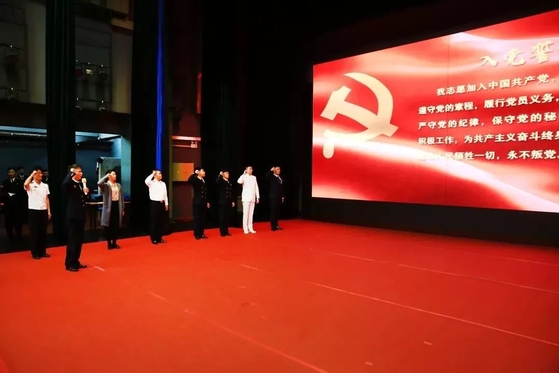 党课展演邀请了党课内容中的主人公,学校91级海洋船舶驾驶专业姜龙来到现场,将党课推向了高潮,姜龙立足祖国和行业发展需要,激励广大学生立高远志,加强学习锻炼,为加快建设交通强国贡献海大力量,并带领广大师生党员重温了入党誓词。