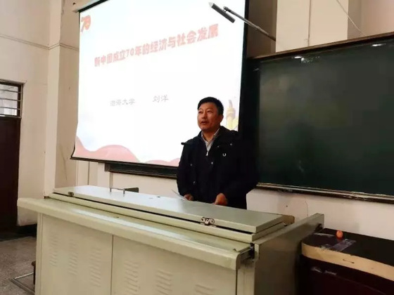 刘洋从“新中国成立70年的伟大历程”“新中国成立70年的伟大奇迹”“新中国成立70年的历史启示”“追梦新时代,奋斗新征程”四个方面,为同学们生动细致地讲解了新中国成立70年间伟大祖国在经济建设、社会发展等方面所取得的辉煌成就,鼓励青年一代大学生坚定理想信念,保持高度的民族自豪感和使命感,进一步强化责任担当意识,不断筑牢当代大学生的爱国主义情怀,为实现中华民族伟大复兴的中国梦而不懈奋斗。