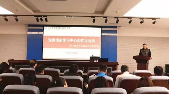 12月19日,辽宁城市建设职业技术学院党委理论学习中心组召开学习扩大会议,邀请中共省委党校专家赵岩教授作了题为“深刻学习领会党的十九届四中全会精神”的专题报告。学院党委班子成员、中层正副职干部、各级党组织书记、专职组织员、专职辅导员、专职思政教师参加会议。