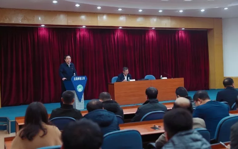 贾玉明代表学校党委围绕统筹推进四项重点措施,向省委第十巡回指导组和与会人员通报了学校主题教育开展情况。主题教育开展以来,学校党委和各单位党组织高度重视,坚持把开展主题教育作为首要政治任务,认真贯彻落实中央和省委要求,严格按照求发书记来校调研座谈时提出的“学习教育要深、调查研究要实、检视问题要准、整改落实要严”的要求,精心组织策划,坚持学思用贯通、知信行统一,统筹推进学习教育、调查研究、检视问题、整改落实四项重点措施,做到系统开展、有机融合,高起点、高标准、高质量推进主题教育工作扎实开展,取得了实实在在的成效,主要体现以下五个方面: