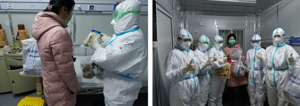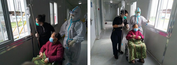 她为雷神山98岁最高龄患者胡奶奶翻身扣背,用轮椅推胡奶奶至外走廊沐浴阳光,为她提供全方位的关怀与照顾,出院后还为胡奶奶邮寄各种生活用品。