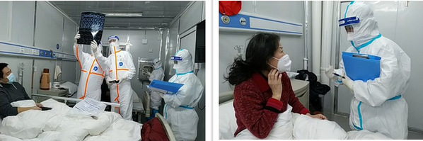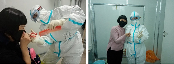 她每日深入病区(舱)进行医护一体化查房,对患者进行健康教育及心理指导,使患者得到连续化、个性化的护理服务,减轻其在隔离病区的心理及生理不适。