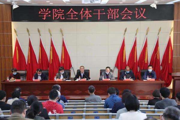 5月13日,辽宁石化职业技术学院召开全体干部会议,总结近期工作,分析当前形势,安排部署重点工作任务。学院党委书记李洪军和党委副书记、院长于忠党讲话,副院长孙承智主持会议。