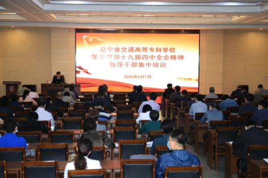 6月1日至3日,辽宁省交通高等专科学校开展学习贯彻党的十九届四中全会精神领导干部集中培训,旨在深入学习贯彻党的十九届四中全会精神,落实好省委教育工委关于培训工作的有关要求。培训内容包括4场现场专家辅导报告、1场视频辅导讲座和1次分组专题学习研讨。学校领导班子成员、全体中层干部共计102人参加了本次培训。学校党委书记张亚军作总结讲话,党委副书记岳贵鑫主持培训。