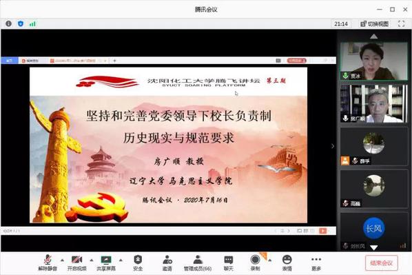 “化大腾飞讲坛”为学校思政教师、党员干部和广大学生打造了一个高水平、高层次的政治理论学习和思想交流平台,增强了师生对习近平新时代中国特色社会主义思想的政治认同、思想认同、理论认同和情感认同。在沈阳化工大学进入内涵建设新时期、“双一流”建设新阶段,讲坛将对学校立德树人、推进一流大学和一流学科建设、服务社会、办好人民满意大学、实现腾飞发展提供强大的精神动力和文化支撑。
