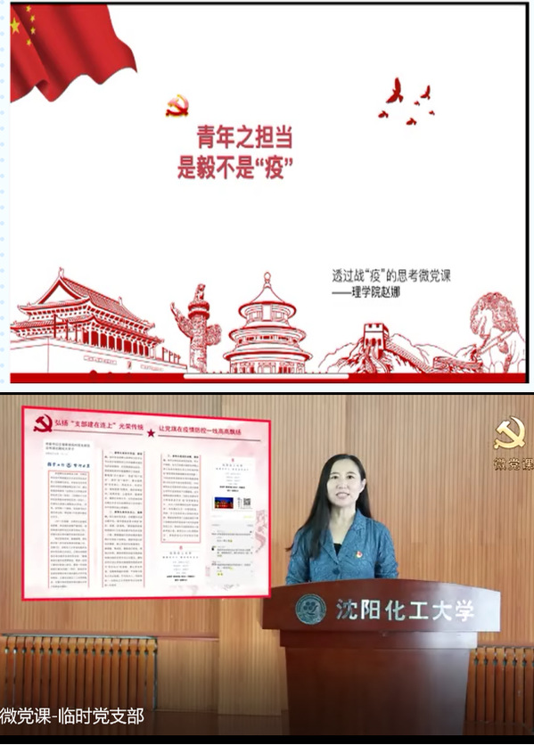 沈阳化工大学围绕贯彻落实党中央、省委教育工委关于常态化疫情防控决策部署,积极组织学校基层党组织开展“四个一”活动,加强学校基层党建工作,统一思想,凝聚力量,“使党员平时工作看出来、教学重担扛起来、关键时刻站起来”,为党徽增光、为党旗添彩。
