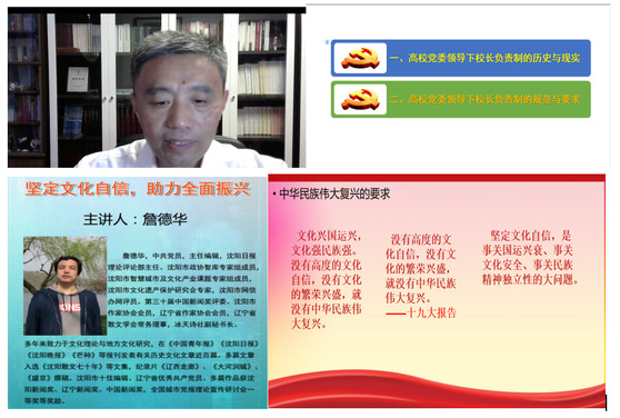 暑假期间,学校党员教育“不放假”“不停歇”。一是依托化大腾飞讲坛开展线上党务工作者、中层领导人员、思政工作人员教育培训。截至目前四位专家学者分别以“坚持和完善党委领导下校长负责制的历史现实与规范要求”“坚定中国特色社会主义理论自信”“坚定文化自信 助力全面振兴”“新中国70年制度优势话语的建构”为题作报告,增强了党员对习近平新时代中国特色社会主义思想的政治认同、思想认同、理论认同和情感认同。二是依托“党旗飘扬筑牢红色防火墙”示范微党课加强各基层党组织师生党员教育。示范微党课中朴实的语言、真挚的情感、生动的事例,生动形象展示了各高校在疫情防控、开学复课、事业发展中的工作成效,展现了共产党员的责任担当与风采,在师生党员中引起强烈反响与共鸣,师生党员叩问初心,明悟使命,纷纷表示要坚定信念,牢记使命,勇于担当,用实际行动为党旗添彩。三是依托线上线下社会实践强化师生党员实践锻炼。开展“传承雷锋精神 重走雷锋路”活动,通过与雷锋生前战友座谈、参观雷锋展馆等,把雷锋精神根植在心灵中、融入到血液中、落实到行动中,发扬艰苦奋斗的优良作风,反对铺张浪费,倡导勤俭节约之风,肩负起新时代传承雷锋精神的使命和担当。各基层党组织开展的“云实践”连线校友、连线企业,加强学生党员的职业生涯教育,促进专业与企业合作交流。