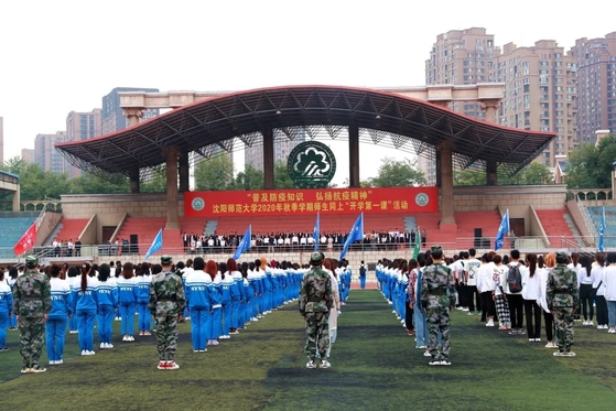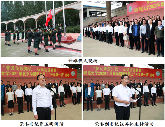 朝霞初绽,秋意盎然。为积极贯彻落实省委教育工委、省教育厅组织开展以“普及防疫知识,弘扬抗疫精神”为主题的“开学第一课”活动相关要求,加强爱国主义教育。9月7日,沈阳师范大学组织千余名师生参加一场不同寻常的升旗仪式,共同聆听一堂别开生面的“开学第一课”。