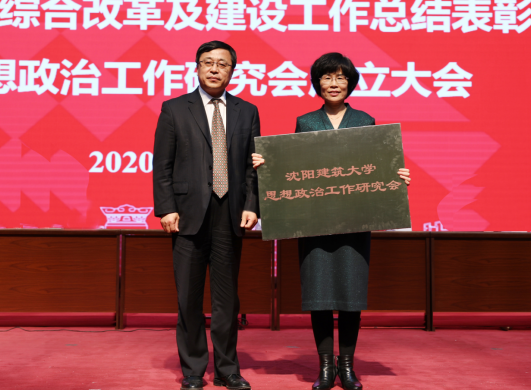阎卫东为“沈阳建筑大学思想政治工作研究会”授牌,马克思主义学院负责同志代表研究会接牌。经充分酝酿及征求意见,党委常委会研究决定,学校正式成立“沈阳建筑大学思想政治工作研究会”。秘书处设在党委宣传部,研究会下设“三全育人”工作研究分会、大学生思想政治教育分会和思想政治理论课分会,办公室分别设在党委宣传部、党委学生工作部和马克思主义学院。