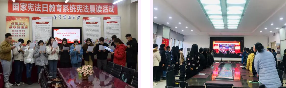11月30日至12月6日是第三个全国“宪法宣传周”。在“宪法宣传周”期间,学校师生围绕“深入学习宣传习近平法治思想,大力弘扬宪法精神”这一主题,开展了一系列特色的宪法宣传活动,增强法治宣传教育效果,为学校高质量发展奠定法治基础。以“12·4”第七个全国宪法日为契机,深入开展宪法、民法典学习宣传教育活动。开展“宪法晨读”活动,师生共同收看全国“宪法晨读”网络直播。学生积极参与“宪法小卫士”和“辽宁普法”公众号有奖答题活动,学生参与率名列省内高校前茅。组织学生参加由辽宁省教育厅主办的“学宪法 讲宪法”知识竞赛和演讲比赛活动,营造学宪法、讲宪法的良好氛围。此外,还通过线上培训、专题辅导、座谈交流等形式,推进民法典知识普及。学校充分发挥校园网、校报、官方微信微博等校园媒体在普法宣传中的作用,依托党校培训、“三会一课”、主题班团会等载体,提高师生的参与度,提升普法宣传教育实效。接下来,学校将持续深入做好普法宣传工作,不断推动习近平法治思想入脑入心,努力开创学校普法宣传教育工作新局面。