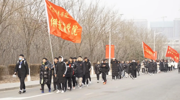 早上,伴随着大学生国旗护卫队英姿飒爽、铿锵有力的步伐,升旗仪式正式开始,雄壮的《义勇军进行曲》响彻校园,五星红旗冉冉升起,学院党委书记姚守齐同志、院长刘征同志带领3500名师生不畏严寒,向国旗行注目礼,并进行了庄严的宣誓。在国旗下,学生代表朗诵了爱国诗词《丰碑的传说》。