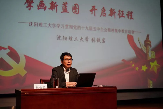 学校党委书记张铁岩作了题为“擘画新蓝图,开启新征程”的主题报告。报告从党的十九届五中全会学习体会和学校未来发展的思考两个方面展开,深入浅出地讲解了党的十九届五中全会召开的背景、党的十九届五中全会公报的主要内容以及开启全面建设社会主义现代化国家新征程的发展阶段、发展理念和发展格局。报告从使命、愿景、任务和保障4个方面阐述了学校未来的发展方向。从人才培养、科学研究、社会服务、文化传承、国际交流5个方向剖析了学校要培养德智体美劳全面发展的社会主义合格建设者和可靠接班人的使命;展望了将学校建设成为具有鲜明办学特色、优化师资队伍、开放办学氛围、良好生态环境、优质培养质量的美好愿景;提出了将学校建设成为国内一流的高水平应用型大学的目标;指出了优化办学格局、凝练学科方向、优化资源配置、提高培养质量、推进科技创新、提升服务能力、创新体制机制、完善评价体系、解决资金约束9项学校未来发展中需要完成的任务;强调了加强党对学校的全面领导、落实党委领导下的校长负责制、加强干部队伍建设、加强基层党组织建设、加强党员教育培训、加强统战工作等保障工作的重要性。报告强调,学校正走在迈向“十四五”的新征程上,实现高水平应用型大学的奋斗目标绝非坦途,需要非比寻常的团结,需要非比寻常的努力,全校上下要继续坚持以习近平新时代中国特色社会主义思想为指导,深入实施“五大发展方略”,坚持“三态共建”发展路径,努力推动学校各项事业在新时期焕发新的活力,为实现教师有尊严感、学生有自豪感、管理者有成就感的“三感同向”的沈理工梦而努力奋斗。