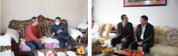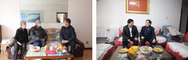 在2021年新春佳节来临之际,辽宁石油化工大学党委书记郭长义、校长钱建华分别在党政办公室、党委组织部、离退休工作处等部门负责同志的陪同下,走访慰问离退休老领导、老干部,代表学校党政向他们送去亲切的关怀和新春的美好祝福,让离退休老同志充分感受到党的温暖和组织的关怀。