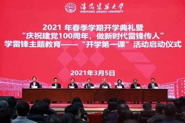 3月5日,沈阳建筑大学举办2021年春季学期开学典礼暨“庆祝建党100周年,做新时代雷锋传人”学雷锋主题教育——“开学第一课”活动启动仪式。学校党委书记董玉宽,校党委副书记、校长阎卫东等学校领导、党委常委出席活动。学校相关部门及各学院负责人、全体辅导员以及师生代表参加活动。全国最美退役军人、全国学雷锋最美志愿者、辽宁省道德模范、原沈阳军区后勤史馆馆长徐文涛大校应邀参加活动。