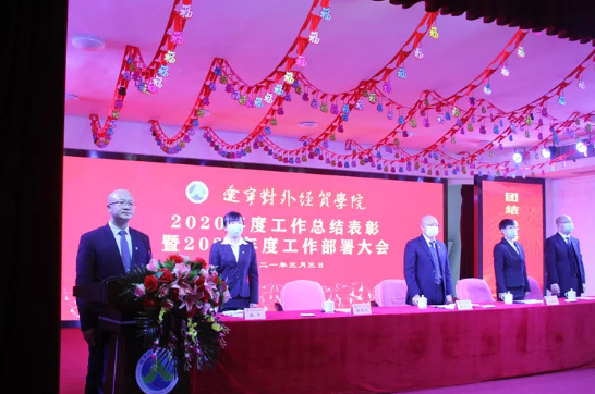 近日,辽宁对外经贸学院召开2020年度工作总结表彰暨2021年度工作部署大会,学院党委书记王万义、院长吕红军等学院领导班子成员,党委常委出席会议,全体教职工参加,大会由学院常务副院长靳晓光主持。