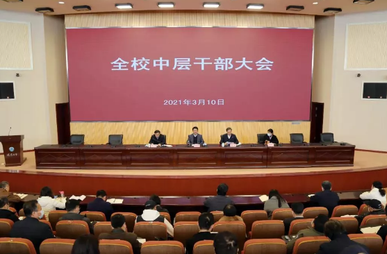 近日,辽宁大学中层召开干部大会。学校领导班子成员、学校实职副处级以上领导干部参加会议。会议由学校纪委书记尹峰主持。
