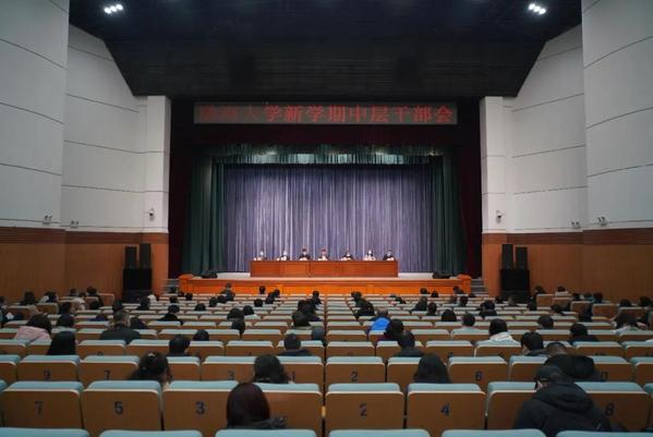 刘洋在讲话中指出,2021是中国共产党成立100周年,是“十四五”规划开局之年,也是学校发展迈入新阶段的重要一年。要以习近平新时代中国特色社会主义思想为指导,全面加强党对学校工作的领导,扎实推进学校各项工作。要按照中央部署和省委要求,高质量开展好党史学习教育,全校各级党组织和党员干部要切实把思想和行动统一到习近平总书记重要讲话精神上来,切实做到学史明理、学史增信、学史崇德、学史力行,学党史、悟思想、办实事、开新局。全校师生要乘势而上,加快推进学校转型发展,切实加强内涵建设,为实现高水平应用型综合性大学的建设目标打下基础。讲话还就做好2021年具体工作提出要求:一是深刻把握新形势新任务,着重在科学认识中适应新发展阶段,着重在主动作为中构建新发展格局,推进创新发展、协调发展、绿色发展、开放发展、共享发展,确保“十四五”开好局。二是加强党的政治建设,推进全面从严治党工作向纵深发展。三是按照中央和省委相关部署,开展好党史学习教育和庆祝建党百年活动。四是毫不放松抓好常态化疫情防控,全力做好春季返校开学和日常防疫工作,加强返校各环节的把控,确保新学期教育教学各项工作有序开展。五是不断细化工作目标任务,努力实现各项工作落地落实,确保任务到人、责任到人、各司其职、各负其责、权责明确。六是不断提升干部的领导能力和管理水平。七是不断增强人文关怀,营造更加良好的校园文化氛围。八是要增强底线意识,统筹推进教育系统防范化解重大风险。要将有关工作做深做实,及时发现问题的苗头,做到早发现、早处置。刘洋强调,“十四五”是学校加快推进教育现代化、全力做好高水平应用型综合性大学转型发展的关键历史时期。广大干部要发扬习近平总书记倡导的为民服务孺子牛精神、创新发展拓荒牛精神、艰苦奋斗老黄牛的精神,在各自岗位上兢兢业业、尽职尽责、求实创新、团结协作,为推动学校事业高质量发展贡献力量。
