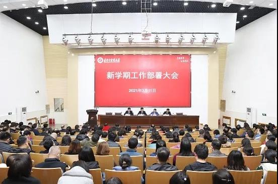 学校党委书记石岩指出,在全国“两会”胜利召开之际,学校召开2021年新学期工作部署会议,是以实际行动贯彻落实全国“两会”精神、贯彻落实党的十九届五中全会精神。结合新形势新任务对做好新学期工作提出三点要求:一是以党的政治建设为统领,不断提高政治站位。二是狠抓各项工作内涵建设水平,推动学校高质量发展。三是贯彻落实新发展理念,建立健全学校高质量发展保障机制。