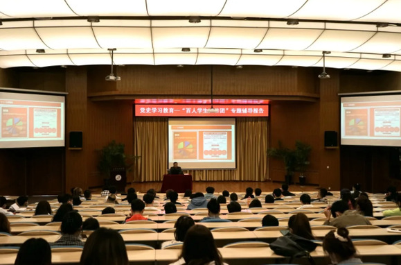 发挥思政课主阵地作用,通过专题教学、学生讨论、主题实践等多种方式,挖掘党史教育的理论深度、拓展党史教育的知识广度、开辟党史教育的实践向度,用党史厚植青春理想信念的根基,以“党史学习教育融入思想政治理论课”为主题,开展了“毛泽东思想和中国特色社会主义理论体系概论”“中国近现代史纲要”两个教研室的集体备课,全体学校领导都围绕党史学习教育讲授了丰富多彩的开学第一课。成立学生百人宣讲团,深入宿舍、课堂,用一个个鲜活生动的党史小故事让同学们深受教育,马克思主义学院负责同志为“百人学生宣讲团”成员及各学院学生干部代表作了“奋斗百年路,启航新征程—党史学习教育为何学,学什么,怎样学”专题辅导报告。