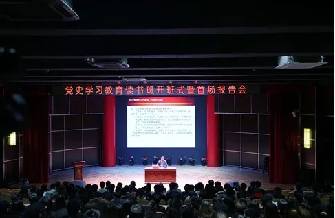 大连财经学院。4月27日,大连财经学院组织召开党史学习教育读书班开班式暨首场报告会。学院党史学习教育领导小组成员,全体中层干部,基层党支部书记,专职组织员、专兼职党务工作人员,思政课教师以及学生党员代表参会。