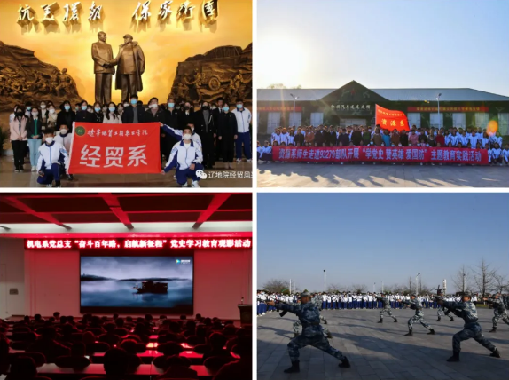 资源系党总支组织师生代表走进部队开展“学党史 赞英雄 爱国防”主题教育实践活动,部队战士在活动中展示出的高超军事技能、过硬军事作风和精彩军事操练让师生们赞叹不已,部队的许多英雄事迹更让师生们备受鼓舞和感动。经贸系党总支组织开展“传承红色基因,宣讲抗美援朝故事”特色主题党日活动。学党史、感党恩、跟党走。师生化身为一个个历史讲解员,重温那段战火纷飞年代中一个个感人至深的红色故事。机电系党总支组织开展“奋斗百年、启航新征程”党史学习教育观影活动,组织2019级学生发展对象和2020级学生入党积极分子在学院多功能厅集体观看红色经典影片《建党伟业》,传承红色基因,弘扬爱国主义精神,教育和引导青年学生进一步坚定理想信念,增强同学党性理论知识。