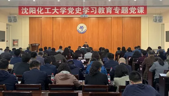 为扎实开展好党史学习教育,根据沈阳化工大学党委党史学习教育工作方案的安排,学校党委书记王强讲授题为《学习百年党史 汲取精神力量 奋力推进学校“十四五”开好局起好步》的专题党课,分三期进行。第一期党课于4月22日进行。学校全体中层干部、教师代表近200人聆听党课。党课由学校党委委员、宣传部部长主持。