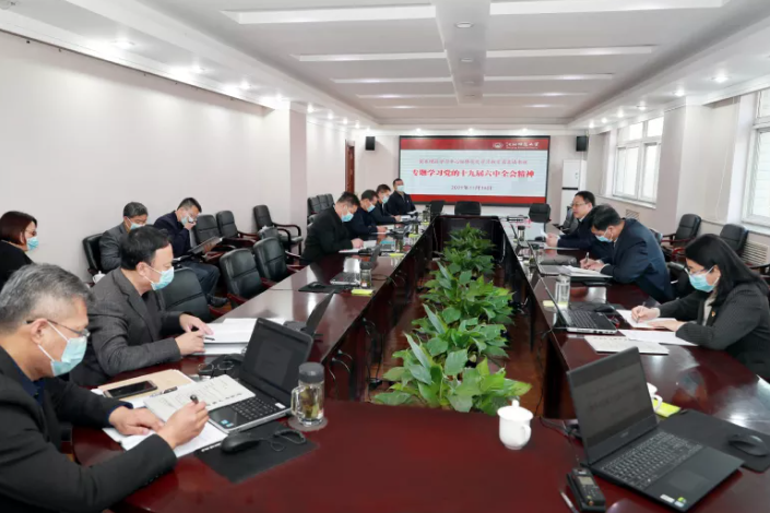 会议强调,学习好、宣传好、贯彻好党的十九届六中全会精神是学校当前和今后一个时期的重大政治任务。全校各级党组织和广大党员干部要进一步增强政治自觉、思想自觉、行动自觉,坚持学习到位、贯彻到位,深刻学习领会全会精神的丰富内涵与核心要义,进一步增强“四个意识”,坚定“四个自信”,做到“两个维护”,不断提高政治判断力、政治领悟力、政治执行力。要把学习领会习近平总书记在全会上的重要讲话精神和全会精神与学习贯彻“七一”重要讲话精神相结合、与学习领会习近平总书记关于教育的重要论述相结合,抓住重点、抓实举措、抓紧落实,确保全会精神落地见效,推动党史学习教育走深走实。要通过全面系统学、联系实际学,深刻把握党百年奋斗的重大成就、深刻理解党百年奋斗的历史意义、深刻领会党百年奋斗的历史经验,赓续红色血脉、传承革命精神,汲取奋进力量、激荡育人情怀,坚持用习近平新时代中国特色社会主义思想铸魂育人,全面贯彻党的教育方针,坚守为党育人、为国育才的初心使命,聚焦立德树人根本任务,埋头苦干、攻坚克难,以高质量党建推动学校事业高质量发展,以优异成绩迎接党的二十大召开。
