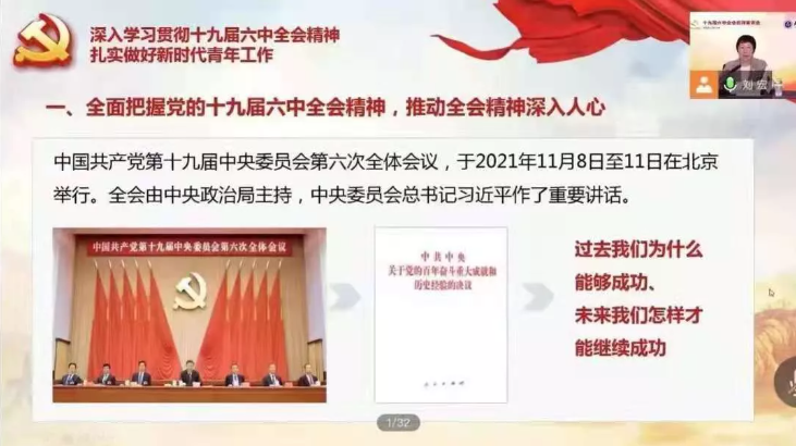 近日,第十三届全国人大代表,大连外国语大学党委副书记、校长刘宏围绕深入学习宣传贯彻党的十九届六中全会及中央人大工作会议精神进行线上宣讲,各学院分团委书记、辅导员及团学代表近百人于线在一同参与本次宣讲会。