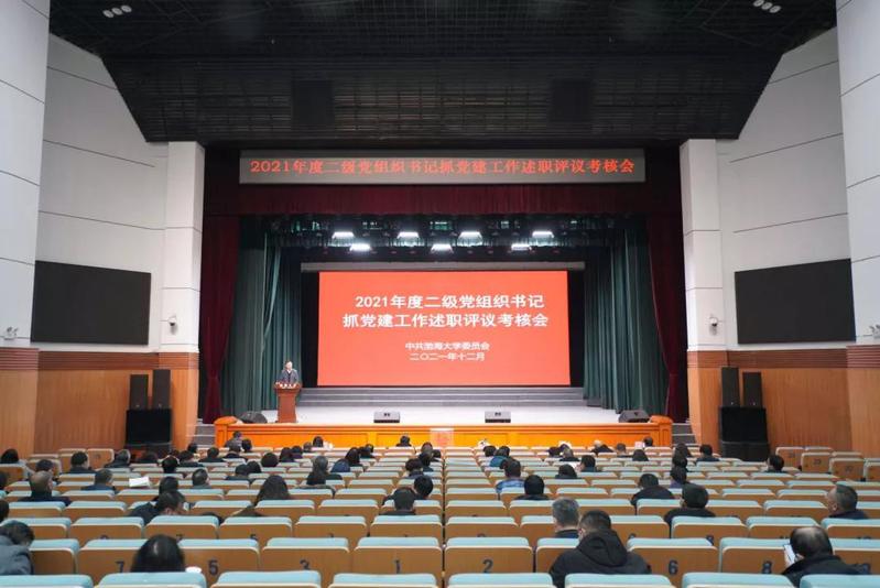 近日,渤海大学召开2021年度二级党组织书记抓党建工作述职评议考核会。全体学校领导、党委委员及党群、行政、教辅部门负责人、二级党组织书记、二级学院院长、组织员、“两代表一委员”、基层党员群众代表等参加会议。会议由学校党委副书记王继成主持。