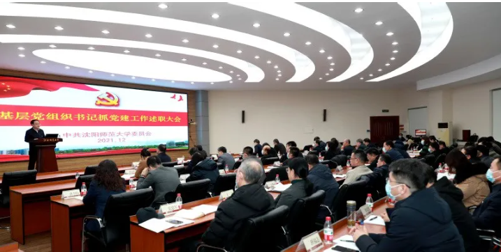为深入贯彻落实新时代党的建设总要求,进一步推动全面从严治党向纵深发展,按照省委组织部和省委教育工委部署要求,近日,沈阳师范大学党委召开2021年度基层党组织书记抓党建工作述职评议考核大会,学校党委书记贾玉明,党委常委、纪委书记、监察专员刘娇,党委常委、副校长许金龙,党委常委、组织部部长卢全,党委常委、宣传部部长邵永运等党委领导班子成员出席测评会,党务及群团工作部门负责人、全校各基层党组织书记参加大会。会议由许金龙主持。