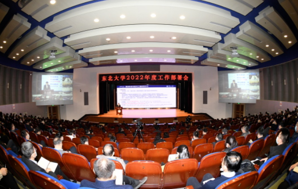3月11日,东北大学召开2022年度工作部署会。学校党委书记熊晓梅主持会议并作总结讲话,党委副书记、校长冯夏庭部署学校2022年重点工作。会议以线上线下相结合的方式举行,学校领导班子成员、两院院士,学校学术委员会、学位委员会、教学指导委员会委员,教代会执委,秦皇岛分校、各学院、部处、直属部门副处级及以上干部、有关部门科级干部和部分教师代表参加会议。