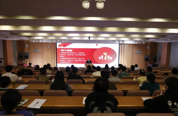 贾玉明讲到,在抗疫伟大实践中,全国人民展现出的“自强不息”“守望相助”的精神品质、“天下兴亡、匹夫有责”的爱国情怀以及“和而不同”“协和万邦”的大国担当,生动诠释了中华优秀传统文化的精神内核。伟大抗疫精神是中国精神的时代延续,是对中华优秀传统文化、革命文化和社会主义先进文化的传承发展。他希望同学们慎终如始遵守疫情防控各项要求,坚定艰难困苦、玉汝于成的必胜信心,弘扬中华传统美德,赓续红色血脉、传承红色基因,在积极践行社会主义核心价值观中不断坚定中国特色社会主义文化体系自信。