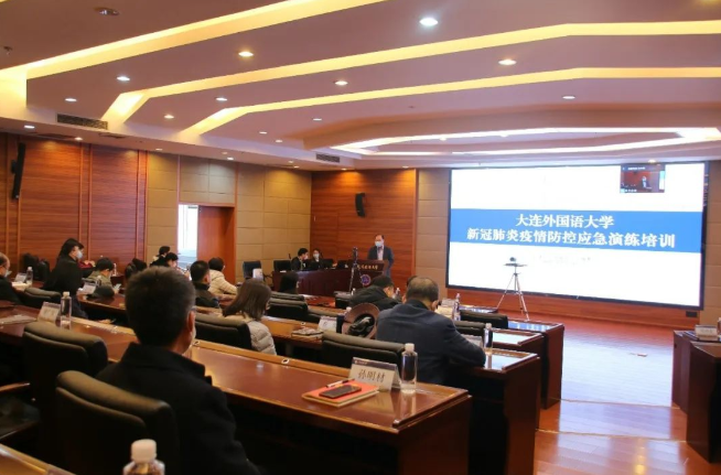 近日,大连外国语大学以线上线下相结合的形式召开了疫情防控应急演练培训会。学校党委书记王伟辰、副校长丛明才,住校的学校疫情防控工作领导小组负责人、相关部门负责人、各二级学院党政负责人及辅导员在主会场参会。校长刘宏、校外学校领导及科级以上领导干部、辅导员通过线上视频形式参会。会议由副校长丛明才主持。