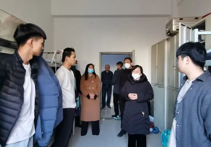 近日,辽宁省交通高等专科学校党委书记张亚军、党委副书记岳贵鑫与学生工作等部门同志一起,深入学生公寓走访慰问学生,了解学生思想、学习、生活以及后勤保障等情况,看望了与学生同吃同住的辅导员以及封闭住校服务的后勤职工。