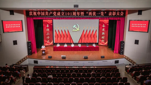 7月1日,沈阳航空航天大学举行庆祝中国共产党成立101周年暨“两优一先”表彰大会。学校党委书记翟文豹等学校领导班子成员、党委委员,以及全体中层干部、组织员、教工党支部书记,受表彰先进集体和优秀个人,部分党员代表参加了大会。大会由学校党委副书记范振伟主持。
