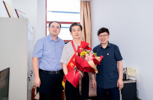 在附属医院新落成的新门诊综合楼里,石岩来到博士生导师、国家二级教授王德山的诊室,为他佩戴“光荣在党50年”纪念章,并代表学校感谢王德山老师多年来在学科建设、教育教学等领域作出的突出贡献,祝福他身体健康、继续为中西医结合学科人才培养“传帮带”工作发挥余热。
