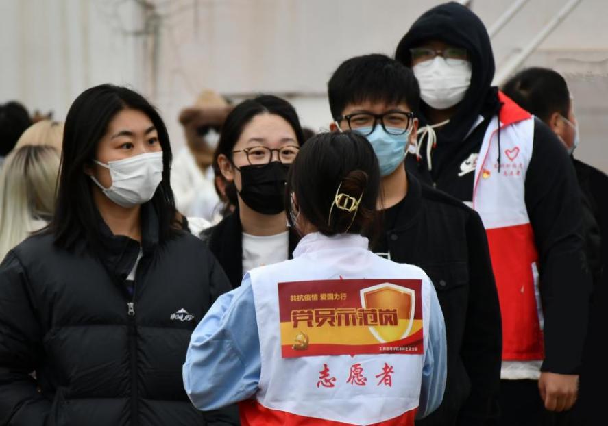 在打赢校园疫情防控战中,支部党员主动参加核酸检测等志愿服务
