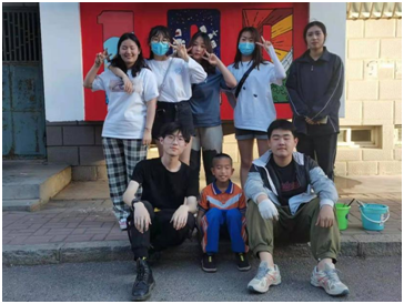 学生为湾里社区绘制建党百年社区墙体宣传画