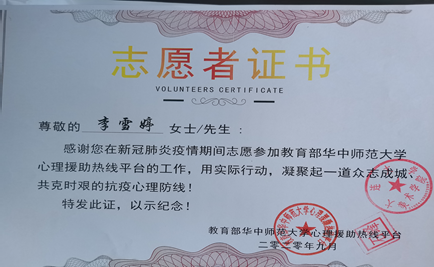 担任教育部华中师大心理援助平台志愿者