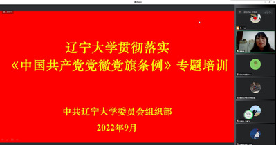 9月23日,辽宁大学组织开展贯彻落实《中国共产党党徽党旗条例》(以下简称《条例》)线上专题培训,全校基层党支部书记、专职组织员近200人参加培训。