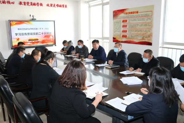 10月28日,铁岭卫生职业学院组织召开党委(扩大)会议,学习宣传贯彻党的二十大精神。学院党政领导班子成员、各党支部书记、党委各职能部门负责人参加会议。会议由学院党委书记党占涛主持。