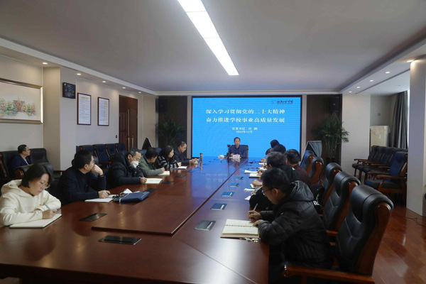 郑少南强调,要坚持“三个到位”将党的二十大精神落到实处。一是学习到位,迅速掀起学习宣传热潮。要把学习贯彻党的二十大精神作为“必修课”“首修课”,原原本本、原汁原味、全面系统地学习领会好党的二十大精神,确保党的二十大精神入脑入心、融会贯通、学以致用。二是谋划到位,把党的二十大精神贯穿改革发展全过程。要主动将党的二十大精神融入全面从严治党、融入立德树人、融入“双一流”建设、融入综合改革、融入规划落实、融入班子队伍建设,切实用党的二十大精神指导办学实践。三是落实到位,形成落地落实的行动自觉。要把学习宣传贯彻党的二十大精神与日常工作相结合,以党的二十大精神为指导,扎扎实实做好本职岗位,不能将学习宣传与工作相脱节,务求取得实效。