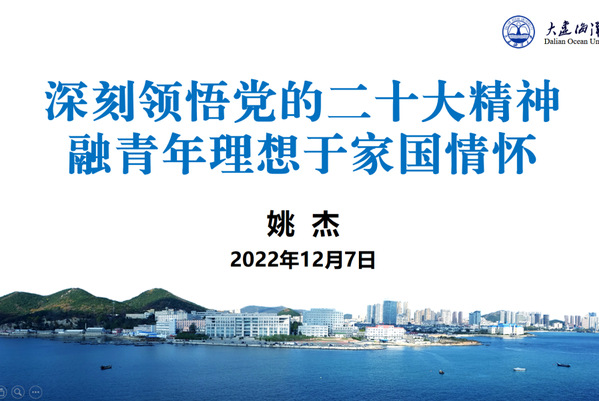 为进一步推动学习宣传贯彻党的二十大精神走深走实,引导学生坚定不移听党话、跟党走,立志做有理想、敢担当、能吃苦、肯奋斗的新时代好青年。12月7日,大连海洋大学党委书记姚杰在线讲授“深刻领悟党的二十大精神 融青年理想于家国情怀”主题思政课,航海与船舶工程学院全体学生、2022级英才班全体学生300余人通过视频会议直播的形式共同聆听了这堂思政课。