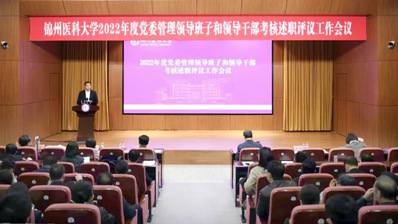 为深入学习贯彻党的二十大精神,坚持和加强党的全面领导,进一步完善干部考核评价体系,建设一支信念坚定、为民服务、勤政务实、敢于担当、清正廉洁的高素质党政领导干部队伍,2月28日,锦州医科大学召开2022年度党委管理领导班子和领导干部考核述职评议工作会议。学校党委常委、党委委员、副处级及以上领导干部参加会议。会议由学校党委副书记曲巍主持。